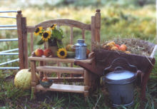 Ein Kalender mit ländlichen Stilleben inspirierte mich, solche Fotos mit Miniaturen, Puppenmöbeln und echten kleinen Früchten zu inszenieren. |