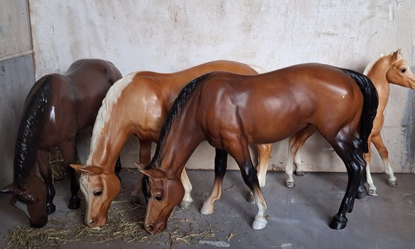 | 6. 12. 25 | Ranchnachrichten Zur Zeit hab ich soviel um die Ohren, daß ich kaum hinterher komme. Und meine kleinen Leute haben viele Pferde zu versorgen. Ich hoffe, die Mustangs können in Kürze mal in die Prairie und dort abgelichtet werden. ![]() Noch ein Teil der tollen Herde, die ich nach und nach alle mal ablichten werde ![]() ![]() Ansonsten hatte ich ein paar neue Trainingshindernisse gebastelt ![]() Das hier ist Ians neue Zuchtstute, wo ich noch über einen Namen sinniere.( Resin painted von C.Jolly), ein sehr spezielles Holy Grail ![]() Ian ging trotz des Regen kurz ausreiten ![]() ![]() Und zum Schluß noch 2 Oldies, die ich auch noch nicht gezeigt hatte, mein Weihnachtsgeschenk an mich selber. ![]() |