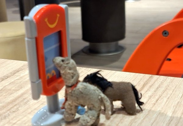 | 14. 12. 25 | Ranchnachrichten Heute sind wir mal bei Gene. Er hat in seiner Küche ein bißchen umgebaut, hat auch ein neues Fenster bekommen. Und gestern hat er einen Kaffeeautomaten gekauft. ![]() ![]() ![]() Unser Oberbarista Köttbullar stellte fest, daß nur ne Plörre rauskommt, aber da fehlte ja auch ein Fach für den Kaffee! also bißchen dran rumgeschraubt. Und nun ist Gene eigentlich nur noch am hinterherwischen, aber mit dem Hinweis, daß Kaffee rauskommt, wenn man welchen hinten in den Tank gießt. wollten sie sich nun auch nicht zufrieden geben ![]() Schon wieder ne Plörre,aber nun ist ja auch kein Kaffeepulver mehr im Fach, das ist jetzt per Überschwemmung über die halbe Küche verteilt ![]() ![]() ![]() ( Ja, ich gebe zu , ich hab ein neues Lieblingsspielzeug) ![]() Dann lehnen wir uns zurück und genießen die Plörre ![]() ![]() Apropos Spielzeug, da kam was im Buschfunk, mit Mini -McD, da warte ich ja nun schon ne Weile ob es das hier auch mal gibt. Also nichts wie hin ( nein, ich hab NICHT 4 Happy meals gefressen, man kann die Spielzeuge auch lose kaufen und das eine hab ich aus Versehen zum Essen dazu doppelt gekriegt, durfte es aber behalten) ![]() Dann bestellen wir uns mal was ( das Ding kann ich übrigens ganz super für mein Schnellrestaurant in Loreenas Maßstab brauchen) ![]() Gene beim Anblick der Apfelschnitze: Och nö, doch nicht so was Gesundes , nach dem Krankenhausessen neulich wollte er jetzt lieber ein Steak und einen Whiskey ![]() |