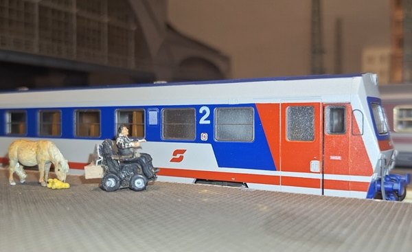 | 3. 12. 25 | Eine KI-Bildergeschichte Als ich neulich mit dem Tonderntriebwagen im Nebel fuhr, hab ich mir den Vorraum mal angeschaut und die mitgeführten Sandbleche und Schneebesen etc regten meine Fantasie an, was für Abendteuertouren man wohl mit diesem sympathischen Zug machen könnte. KI machts möglich, einsteiegn , wir fahren in den ganz ganz hohen Norden, wo es richtig kalt und winterlich ist , bibber. Ich hab mir einen ganzen Film damit gebastelt, an dem ich Euch nun in Form einer Bildergeschichte teilhaben lasse- ----- ( Disclaimer: ab hier sind alle Bilder dieses Posts KI generiert) ----- ![]() Brr kalt, schnell einsteigen. ![]() ![]() Also im Zug ist es jetzt bei DER Kälte auch nicht so warm, zum Glück kann ich es Gene gemütlich machen, der ist ja nicht so fit ![]() Da oben im Norden wird es jetzt noch weniger hell im Winter als hier ![]() ( die folgenden 2 Bilder hat mein Bruder beigesteuert ![]() Wir sind da! ![]() ![]() Süße Rentiere gibts hier. Wir machen jetzt einen Spaziergang in die Stadt ![]() Da gibts ja auch einen Modellpferdeladen ![]() ![]() ![]() Vielleicht sehen wir ja heute abend Nordlichter ![]() ![]() Das war ar...kalt, jetzt aber schnell ab ins warme Bett. Am nächsten Morgen wird erstmal gefrühstückt ![]() Und für Fotos posiert( den Prompt hatte ich mir aus der KI Tierfotogruppe gemopst und umgeschrieben. ![]() es hatte schon wieder geschneit ![]() ![]() ![]() Ja,und dann hieß es so langsam mal den Heimweg antreten. |