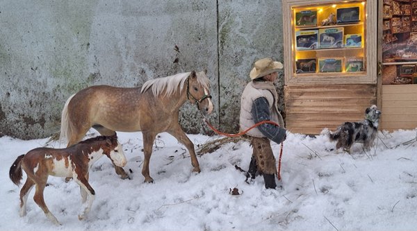 | 8. 1. 26 | Ranchnachrichten![]() Über Nacht hatte es noch mehr geschneit ![]() Heute gehen wir mal in den Laden hinein ![]() ![]() Hier gibts ja seeeehr interessante Sachen. Ich hatt Chat gebeten in den Laden auch Kartons, wie den von Chantal und Mondkeks zu tun. Ähm ja das hatte er getan. Wir müssen uns einige der Figuren mal genau anschauen. Da war doch dieser Karton mit der Aufschrift Chanteks.....also eine Kreuzung ( Chat züchtet also nun auch Modellpferde!). Ich bat ihn Chanteks mal genau zu zeigen und auszupacken ( die Mondkeksgeschichte geht hiermit weiter XD) ![]() Was der gelbe Stern bedeutet ist mir nicht bekannt, evt ein Premium Mistfleck ![]() Nich minder interessant ist ja die Skulptur im Karton daneben, laut Chat ein "fantasy steed" Der ist ja mal bildschön ![]() Chat oder schließlich Gemini hiervon eine Nahaufnahme zu entlocken, war übrigens ein Meisterwerk der Promptformulierung, vielleicht hat Chat sich auch geschämt? ![]() Ihr könnt euch schon denken, die möchten meine Leute jetzt haben, also gleich mal umsetzen,kicher ![]() Zuerst interpretierte Chat die Skulptur im Karton übrigens so wie das weiße Pferd, aber die sieht ja nun mal anders aus, eher wie im Karton dahinter noch zu sehen,ggg. ![]() Nach diesem interessanten Besuch im Laden( bei dem ich hier mindestens dreimal vom Stuhl fiel XD), gehen wir nun ausreiten. Sehr weit kamen wir nicht , hier mal die aktuelle Schneehöhe, gemesssen von Gamblers Rimfire: ![]() Hier noch ein Blick in Genes Küche, er verfolgte Updates zum Unwetter morgen ![]() |