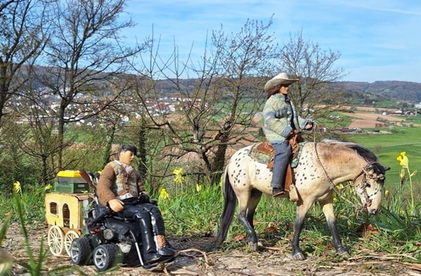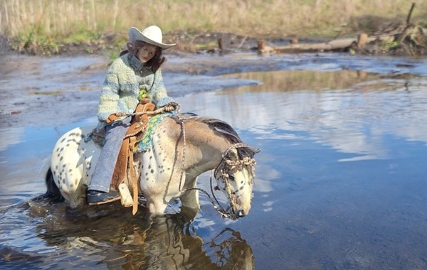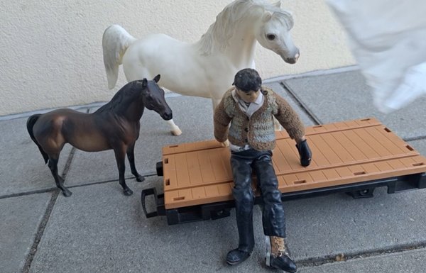 | 19. 3. 26 | Ranchnachrichten![]() Na, da hat aber einer Lehmfüße nach seinem gestrigen Abenteuer XD ![]() ![]() ![]() ![]() ![]() Zuhause brachte der gelbe Pferdetransporter etwas sehr seltenes und winziges. Bad Ass Rocky fand den garnicht so winzig.... (Im H0 soll es nur 9 Stück geben, da es ein Versehen war mit der Größe, so hab ich es verstanden. Umso mehr freu ich mich auch noch so nen süßen ergattert zu haben, von Jessica Geer bemalt. Er hat ne Metallbase, auf der er mit winzigsten Magneten steht, aber er steht auch auf dieser Base von mir weil da Eisendraht drin ist, ich mach aber demnächst nochmal so eine aus Blech) ![]() Der kleine Bad Ass Rocky ließ sich übrigens nicht einschüchtern ... ![]() Am Modellpferdeladen fand heute eine LS statt ![]() ![]() Inzwischen ist Abend und durch Zufall fand ich heute in einem Trödelladen einen Bilderrahmen , der einfach super als Stockwerk drüber paßte. Ansonsten wird das rechte Schaufenster gerade umdekoriert ![]() ![]() Gene kam aus dem Trödelladen auch mit fetter Beute nach Hause ![]() Er hatte Plastiktüten voll Vintagegeschirr gekauft und eine Keksdose ![]() Da waren ja noch mehr tolle Sachen drin, zb ein Taschenmesser ( Jetzt darf Gene nicht mehr in die U-Bahn, aber die streikt ja eh nur noch) ![]() So, dann ab nach Hause , die Läden machen nun auch schon zu ![]() |