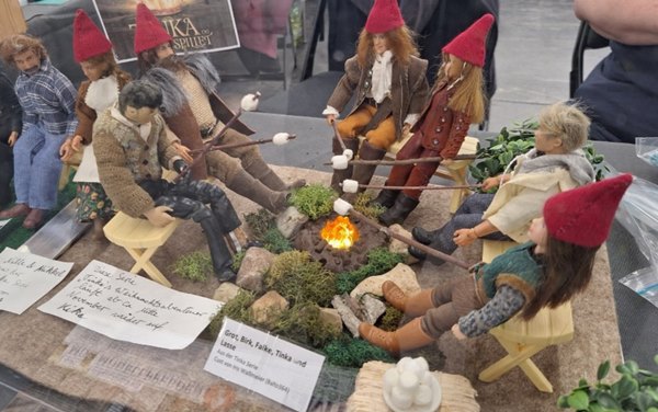 | 3. 4. 26 | Ranchnachrichten![]() Die Plüschies campen immernoch am See. Und wenn Emma noch lange braucht, bis sie am Kaffee ankommen, schläft Köttbullar ein ( Emma ist übrigens aus Fimo mit realem Häuschen. Einige kennen sie ja) ![]() ![]() TeeVee frühstückte erstmal, er wollte gleich noch den Wald erkunden ![]() ![]() Jocelyn wollte derweil noch mit Plörre zum Trail üben für ein Osterturnier ![]() ![]() Dann entdeckten wir noch was superspannendes ![]() Das ist ja wirklich niedlich! ![]() TeeVee rekrutierte etwas was wir zum Tauschen reintun konnten, von seinen Essenvorräten XD und nahm sich ein Buch mit , vond er kleinen Anna. außerdem schrieb er sich bzw seine Kollegen ins Gästebuch ein(Nagut, ich hab das für sie gemacht) ![]() ![]() TeeVee konnte es kaum erwarten nach Hause zu fahren und das Buch zu lesen (Ist das niedlich, danke liebe Anna) ![]() Der war jetzt erstmal beschäftigt. ![]() Und ich kümmerte mich um Sachen, die wir da morgen reintun können. Da kam Bubu rein und war völlig begeistert. Sie hatte nach einem halben Jahr rausgekriegt, wie man die Kamera einschaltet... ![]() Guckmal , da muß so ein grüenes Licht leuchten! Na dann los: ![]() Wow, die sind ja besser als von meinem ersten Fotohandy! ![]() Echt super! Nun steht Bubus Fotografenkarriere ja nichts mehr im Weg! ![]() |