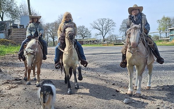| 27. 3. 26 | Ranchnachrichten![]() ein Nachtrag zum letzten Blogeintrag: die Show ist nun zuende gerichtet und in den Halfterklassen durften sich meine Westernpferde über allerlei Platzierungen freuen ( das Bild oben ist keins von der Schau, sondern ein Bild dass ich für mein persönliches Video mit ihnen und ihren Schleifen, die ich mir ausgedruckt hab, genacht hab) Und Chantal, die am Schluß Reserve Grandchampion wurde, übrigens war das ein unbearbeitetes Bild. ![]() ![]() Ein relaxter Frühlingsmorgen ![]() ![]() ![]() Und jetzt geht es wieder interessante Gefilde erkunden ![]() ![]() Das gibt wieder dreckige Füße... ![]() ![]() ![]() ![]() ![]() Nach diesem Schlammabenteuer erkundeten sie das Gelände weiter ![]() Sag mal Pep. was machst Du denn da, gehts noch? ![]() ![]() |