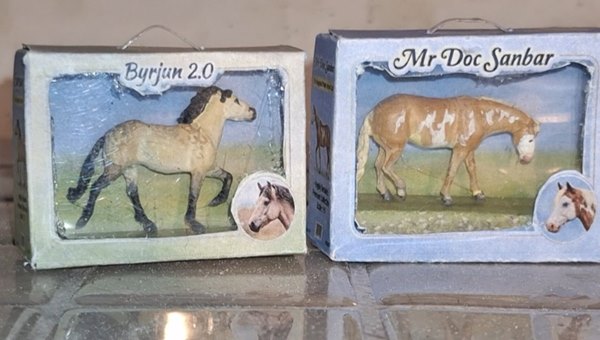 | 31. 3. 26 | Ranchnachrichten![]() Heute gibt es nur 2 Neuvorstellungen. Das hier ist LBR Plörre Arabica ( sowas kommt raus, wenn man seinen kleinen Bruder nach einem Namen für einen Kaffeewasserappy fragt) Das 2te neue Modell ist ein Breyer cust ![]() (Das Mold, ein altes Christmas ornament war mir bislang völlig unbekannt) ![]() ![]() Plörre mußte es gleich mal genauer betrachten |