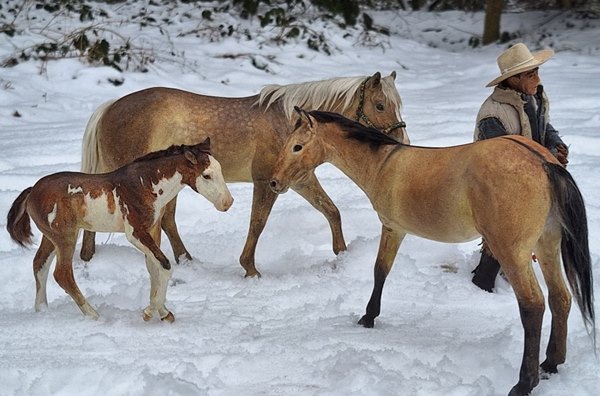 | 13. 2. 26 | Ranchnachrichten![]() Und da ist er : Rocky von der Rocking R Ranch/ Rescue. Er ist ein sehr umstrittenes Pferd, was mir bewußt ist, aber ich folge seiner Story ( und der seiner Kumpels ) nun schon eine ganze Weile und es war mir ein Bedürfnis ihn zu basteln ( natürlich mit Erlaubnis). Ansonsten ist der Winter zurück und Ian stoppte kurz seine Morgenrunde, um die Pferde rauszulassen und zu füttern. ![]() ![]() ![]() ![]() ![]() ![]() ![]() ![]() ![]() Das der Ton auf Social Media immer rauher wird, wissen wir ja...Jetzt kamen wegen Rocky Trolle, die so Sachen wie Todeswünsche posteten, also gegen mich, weil ich das Modell gebastelt hab, der echte Rocky ja sowieso.... Ian ritt mal um die Ranch, um die Trolle zu verscheuchen XD ![]() Da ist die Tür! ![]() Gene !!! Nicht!!! ![]() Öhm , das ist mir jetzt furchtbar peinlich. Aber nun gehts auch in den Stall, angesichts von Wölfen. Trollen und Idioten ist es zu gefährlich , die kleinen nachts draußen zu lassen ![]() ![]() ![]() Gene versorgte die Tiere und bereitete Milch für seine eigenen Fohlen zu #Ansonsten hatten wir noch diese sehr brauchbare Kiste aufgetan, die Putzkiste wird. ![]() ![]() |
