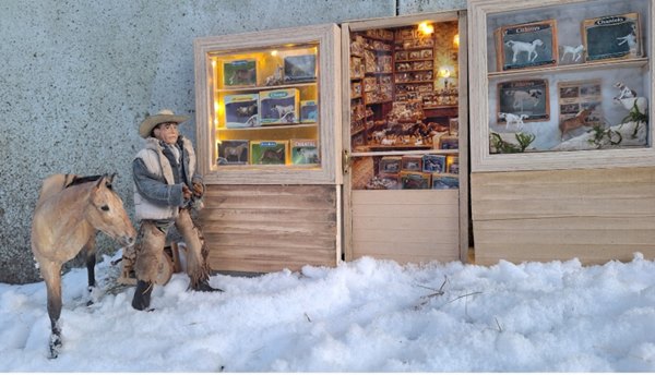 | 20. 2. 26 | Ranchnachrichten So, jetzt gibt wieder einiges nachzutragen, vor allem Schneefotos ![]() ![]() ![]() ![]() ![]() Mit den Schneefotos dürfte es aber bald vorbei sein, der Frühling steht schon in den Startlöchern ![]() ![]() ![]() ![]() Am Tag darauf kam unsere Lieferuzng von A&M Designs an, die ich u.a. für das zweite Schaufenster brauchte ![]() ![]() ![]() Ganz fertig ist es noch nicht ![]() Aber ich wollte den Laden so gern nochmal dort und im Schnee ablichten, das hat nocht geklappt ![]() ![]() Ian mußte sich die Neuheiten natürlich auch mal anschauen ![]() ![]() ![]() Gene hatte ein neues Meerschweinchen ( Miniverse, geflockt) ![]() ![]() ![]() Soweit die kleine Zusammenfassung |
