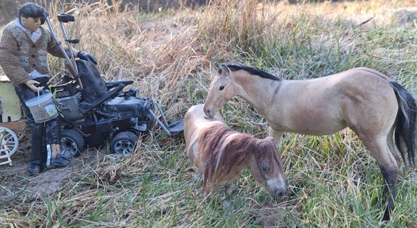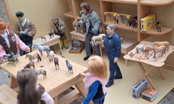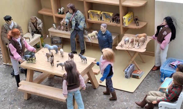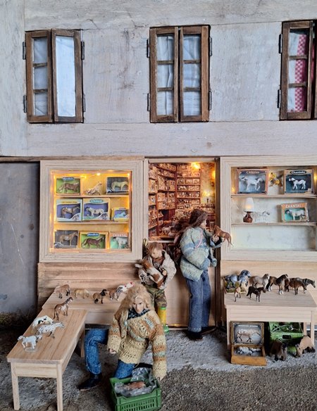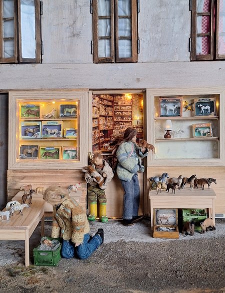 | 19. 3. 26 | Ranchnachrichten![]() Na, da hat aber einer Lehmfüße nach seinem gestrigen Abenteuer XD ![]() ![]() ![]() ![]() ![]() Zuhause brachte der gelbe Pferdetransporter etwas sehr seltenes und winziges. Bad Ass Rocky fand den garnicht so winzig.... (Im H0 soll es nur 9 Stück geben, da es ein Versehen war mit der Größe, so hab ich es verstanden. Umso mehr freu ich mich auch noch so nen süßen ergattert zu haben, von Jessica Geer bemalt. Er hat ne Metallbase, auf der er mit winzigsten Magneten steht, aber er steht auch auf dieser Base von mir weil da Eisendraht drin ist, ich mach aber demnächst nochmal so eine aus Blech) ![]() Der kleine Bad Ass Rocky ließ sich übrigens nicht einschüchtern ... ![]() Am Modellpferdeladen fand heute eine LS statt ![]() ![]() Inzwischen ist Abend und durch Zufall fand ich heute in einem Trödelladen einen Bilderrahmen , der einfach super als Stockwerk drüber paßte. Ansonsten wird das rechte Schaufenster gerade umdekoriert ![]() ![]() Gene kam aus dem Trödelladen auch mit fetter Beute nach Hause ![]() Er hatte Plastiktüten voll Vintagegeschirr gekauft und eine Keksdose ![]() Da waren ja noch mehr tolle Sachen drin, zb ein Taschenmesser ( Jetzt darf Gene nicht mehr in die U-Bahn, aber die streikt ja eh nur noch) ![]() So, dann ab nach Hause , die Läden machen nun auch schon zu ![]() |
