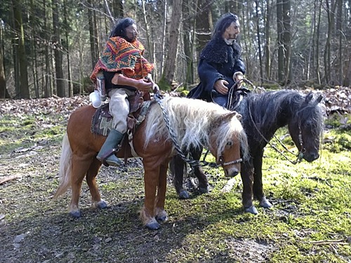 | 26. 7. 16 | Ranchnachrichten Heute haben wir mal 2 der neuren Pferde vor die Linse gezerrt,die noch namenlos sind: Der Paint steht eigentlich zum Verkauf, aber daß sie außer ein paar Spaßanfragern bisher niemand wirklich für ihn interessierte, wird er nun wohl hierbleiben. (Er ist zwar noch abschwatzbar, aber nur noch in extrem gute Hände.) Das andere ist die weiße Stute von Sonntag. Herr Meier überlegt gerade, ob er sie übernimmt, da sie in der Größe gut als Reitpferd für ihn paßt Ian und Dan ritten dann aus. Währenddessen waren die Bärchen mit der Beerenernte beschäftigt Ramon suchte Pfiffis, dh suchen mußte er nicht,die waren überall. Und im Gegensatz zu Mausmann findet er es gar nicht schlimm, das die alle so schön in Modellgröße steckenbleiben, hihi. Danach ritten, bzw gingen sie weiter und kamen an meine neue Lieblingsstelle, wo es einfach nur schön ist, irgendwie ein heiliger Ort Dort im Moos gab es viel zu entdecken Das hier ist die Zungenkernkeule, sie wächst auf Hirschtrüffeln: Tja, ich glaub es gibt heute nicht nur beim Ramon Pilze Ansosnten gabs heute ne coole Überraschng, ein Gestüt war von Belgien nach Frankreich umgezogen und hatte uns ein paar Pferde vermacht, darunter diesen süßen Kaltblüter. Außerdem hat Loreena, die einen Teil der Pferde bei sich aufnahm, jetzt einen Ameisenbär.... Der Kaltblüter heißt übrigesn "Poltergeist" |