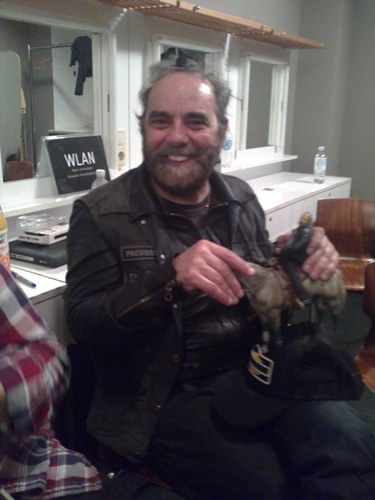 | 27. 8.15 | Ranchnachrichten Dirk hatte auf dem Jahrmarkt einen großen häßlichen Teddy gewonnen XD Manchmal sind in den Ü-eiern ganz brauchbare Sachen drin. Nur Eloise ist bis jetzt nicht so begeistert: erst kriegt sie eins mit der Keule ( ok....selber schuld) und nun auch noch das: Moldy Peach brachte den Einkauf nach Hause, es war aber auch mal wieder alles auf einmal alle geworden....Nach unbestätigten Meldungen gab es heute übrigens keine Bananen Dan war derweil im Studio und besprach kommende Projekte mit Filmemacher Adam (der, dessen lebendes Vorbild Acadie auf Dans Verstärker getapet hatte) Adam hatte Hintergrundfilme für die Musik gedreht und filmt Dan immer auch live beim Konzert, was dann z.T. auf die Videowand projeziert wird Hier noch der Film: ttps://youtu.be/N0QSviCfOL0 |